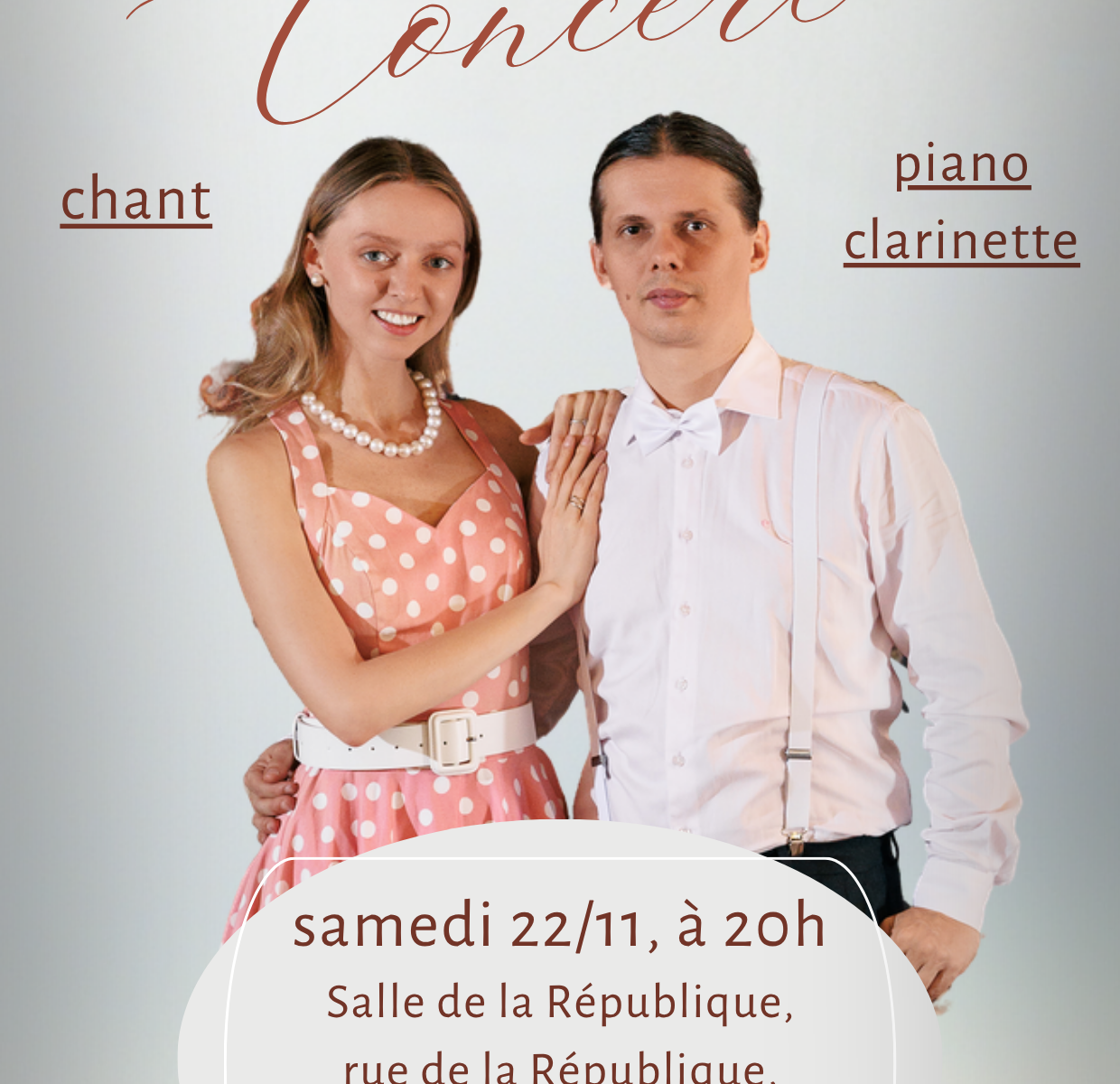 L’association Olessia a le plaisir de vous inviter, comme l’an dernier, au concert d’Elyzaveta Zavietnaya (chant) et d’Anton Prischepa (piano et clarinette).